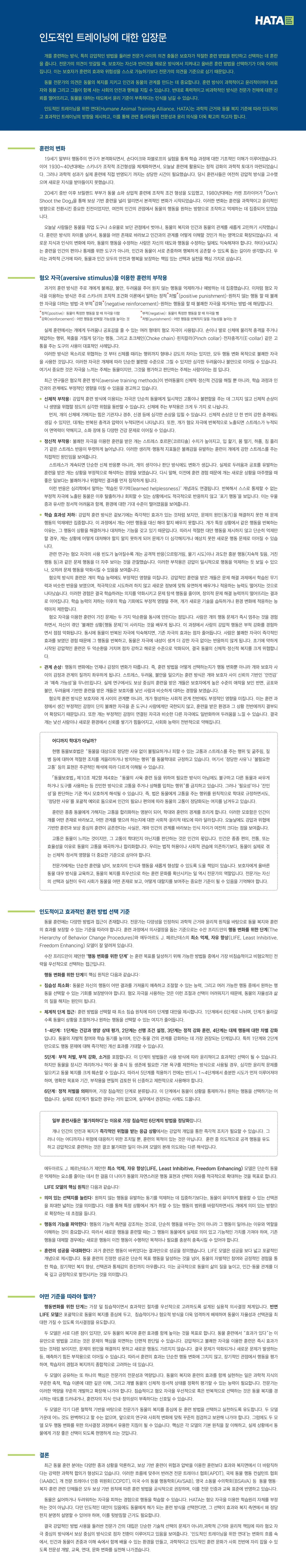 HATA 인도적인 트레이닝에 대한 입장문