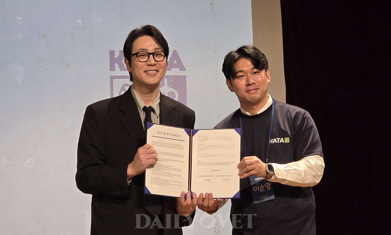 이날 HATA는 성공회대학교 시민평화대학원 동물권과 사회 연구 전공(교수 박경태)과 한국반려동물행동의학협회(KABA, 회장 나응식)와 협약을 체결했다.