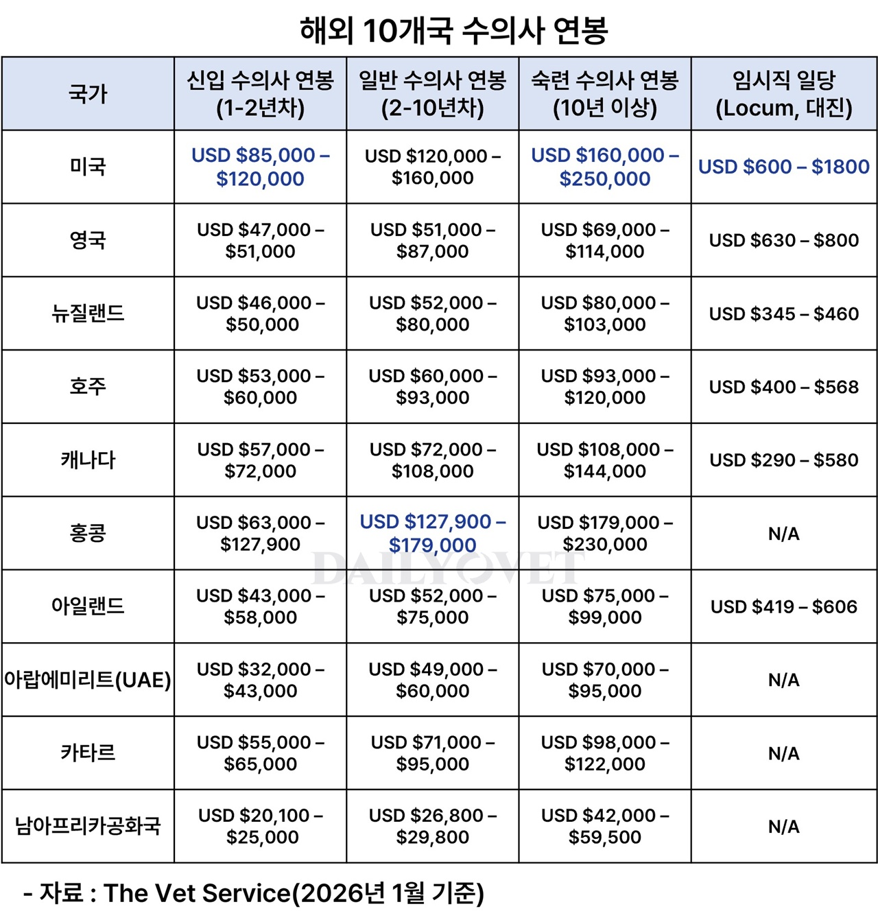 The Vet Service, 2026년 1월 기준 10개국 연봉 조사 결과 공개