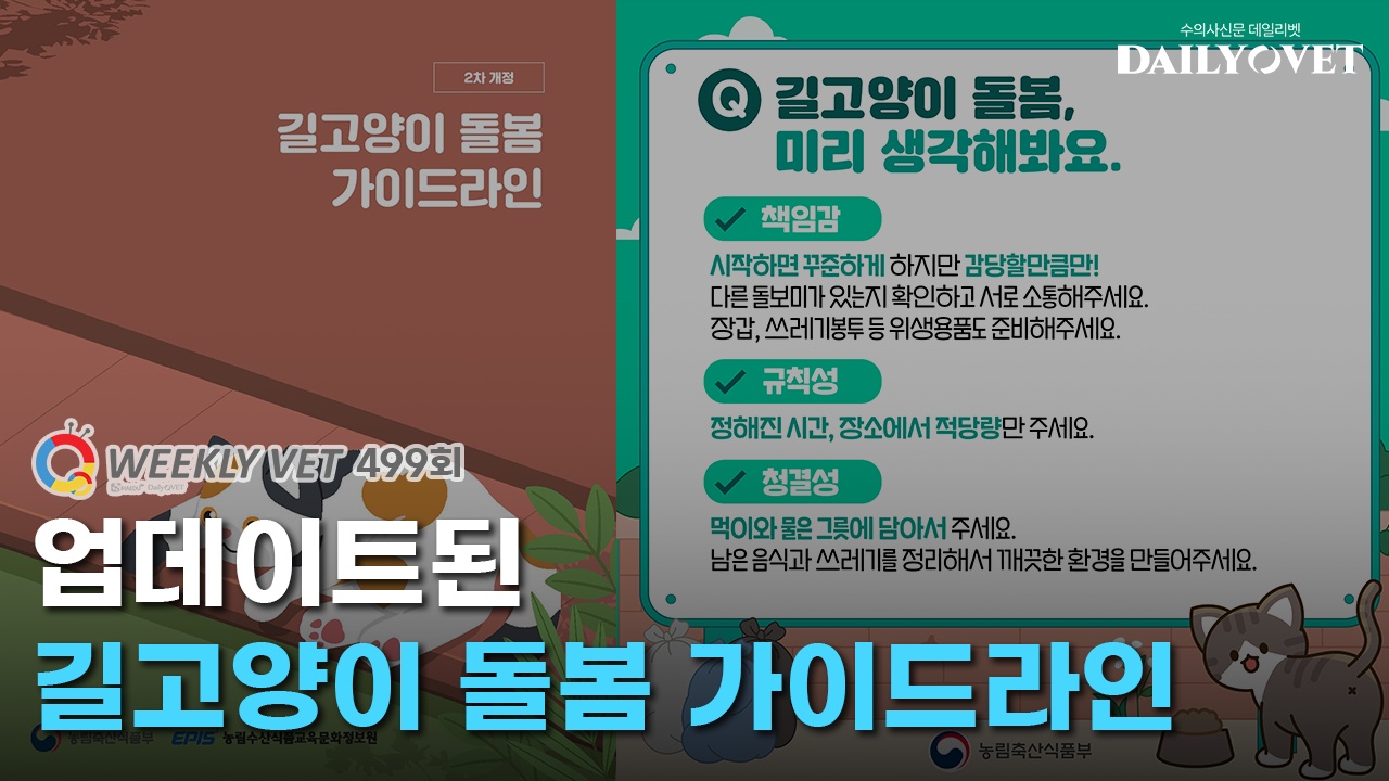 위클리벳 499회에서 개정된 ‘길고양이 돌봄 가이드라인’의 내용을 살펴보겠습니다.