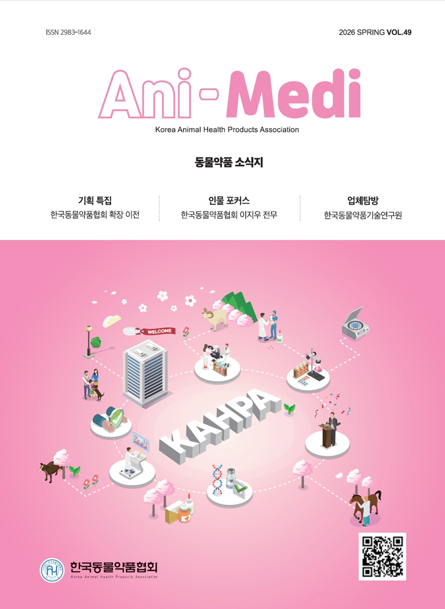 (사)한국동물약품협회(회장 정병곤)가 3월 27일(금) 동물약품 소식지 Ani-Medi(애니메디) 제49호(봄호)를 발간했다.
