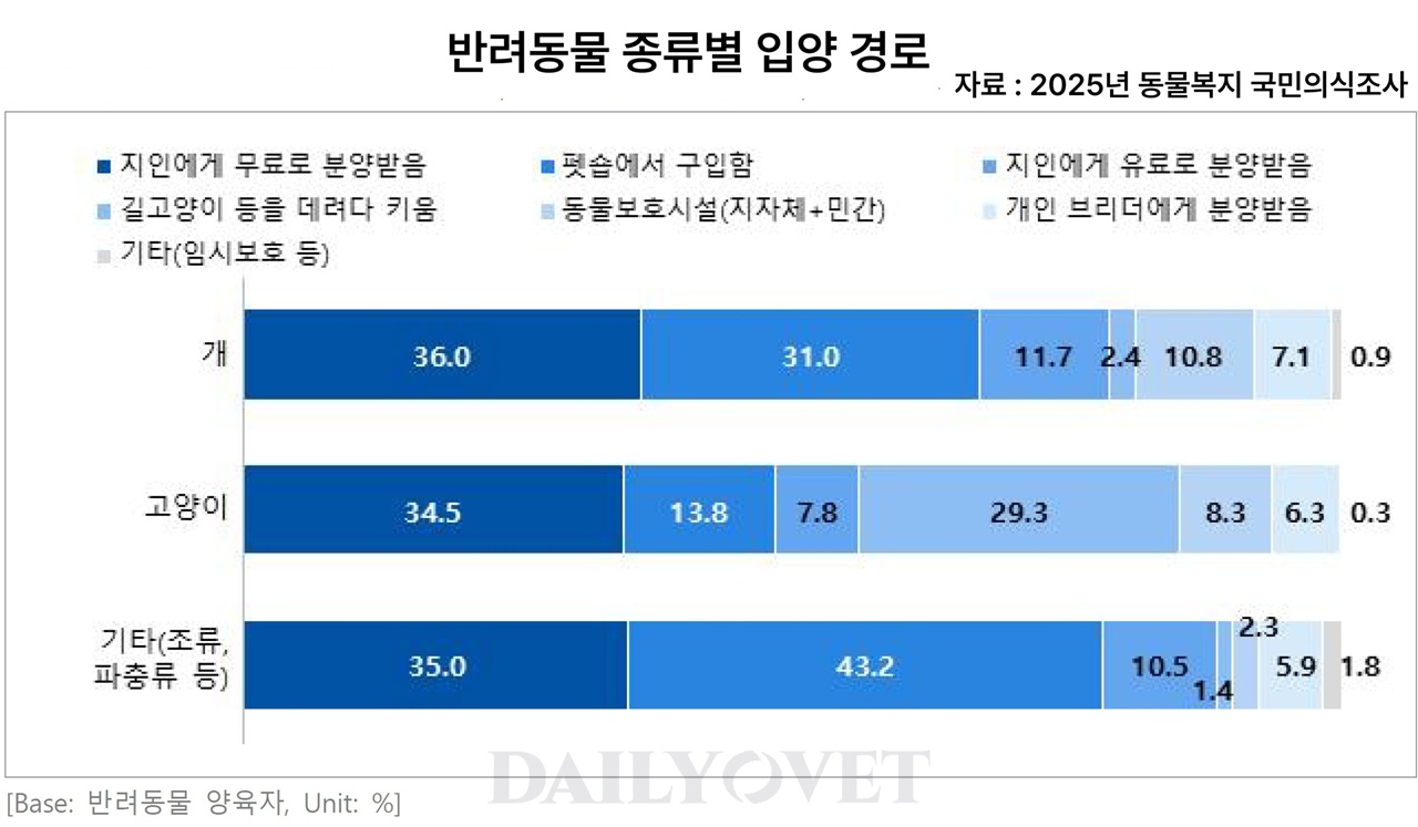 농림축산식품부의 2025년 동물복지 국민의식조사의 반려동물 입양·분양경로 조사 결과다.