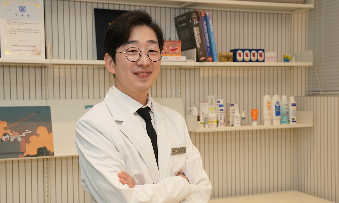 임상을 배우면서 반려동물의 마지막 순간을 보는 것에 대한 걱정이 있었어요. ‘내가 감히 생명에 대한 어떤 선택을 할 수 있을까’라는 고민이었죠. 그런데 피부과라는 과목을 접하고 나서는 이런 고민이 사라졌습니다. 피부과도 물론 위중한 질환이 있긴 하지만, 대부분 아이의 삶의 질 관리에 초점을 맞춥니다.
