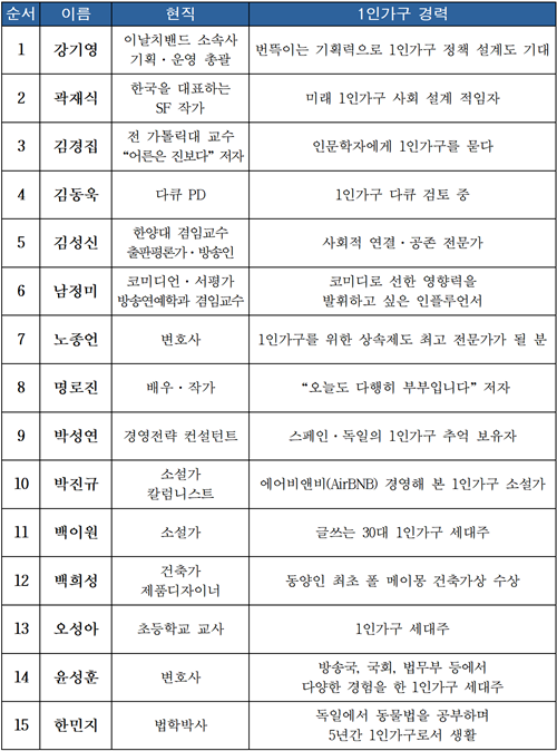 지난 2월 건축가, 작가, 인문학 교수, 다큐 PD 등 다양한 배경의 개방형 민간위원단으로 구성된 TF가 발족했으며, 1인가구의 사회적 공존을 위한 제도 개선을 추진 중이다.