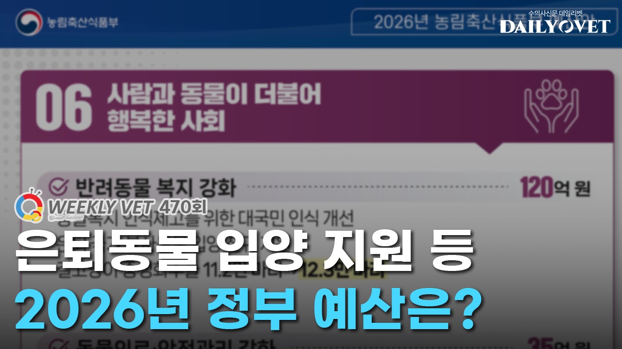위클리벳 470회에서 정부의 2026년 동물복지 관련 예산안을 살펴보겠습니다.