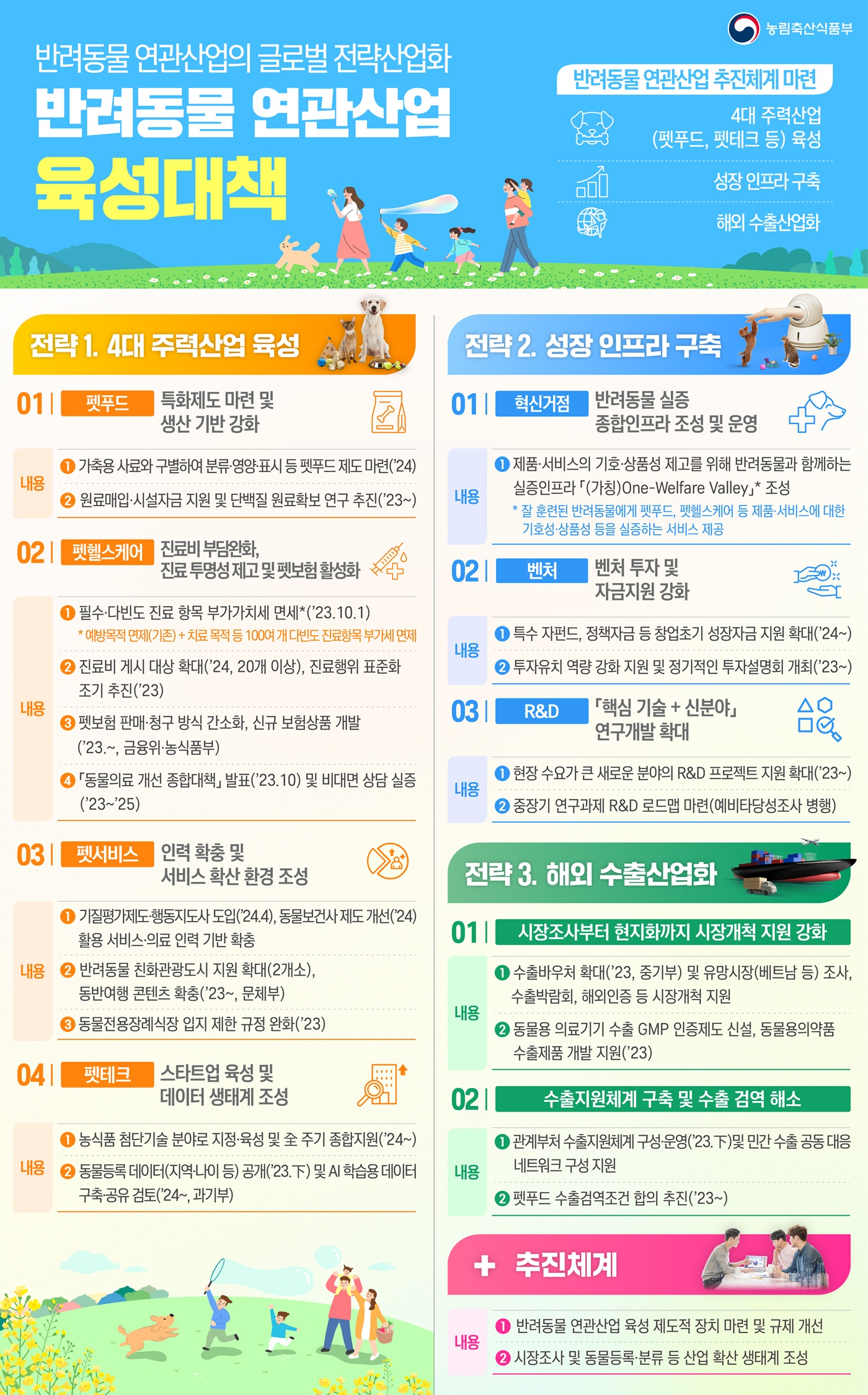 참고로, 정부는 지난 2023년 8월, 펫푸드·펫헬스케어·펫서비스·펫테크를 4대 주력산업으로 하는 반려동물 연관산업 육성대책을 처음으로 발표한 바 있다. 앞으로 이러한 육성계획이 5년에 한 번 발표될 것으로 보인다.