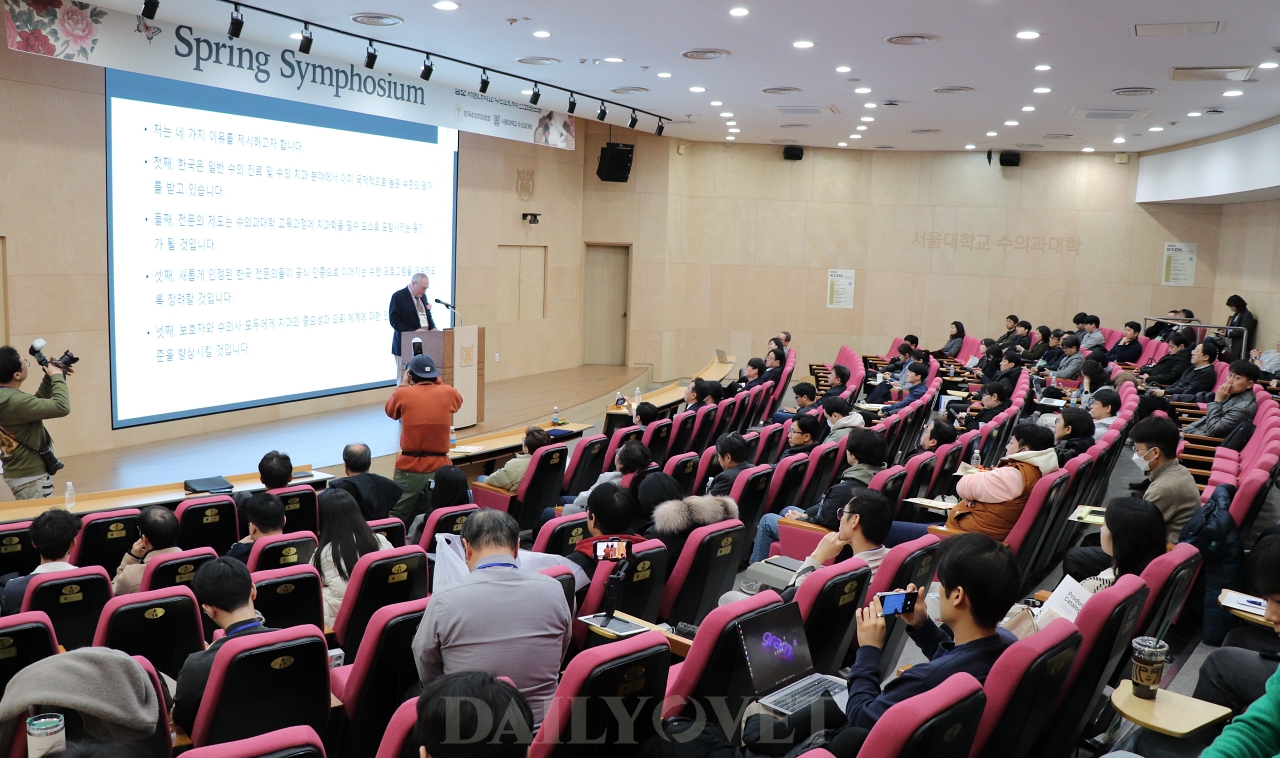 베르스트라테 교수는 이날 심포지엄에서 미국수의치과전문의 제도의 역사를 소개하면서 한국수의치과전문의 제도의 필요성을 역설했다.