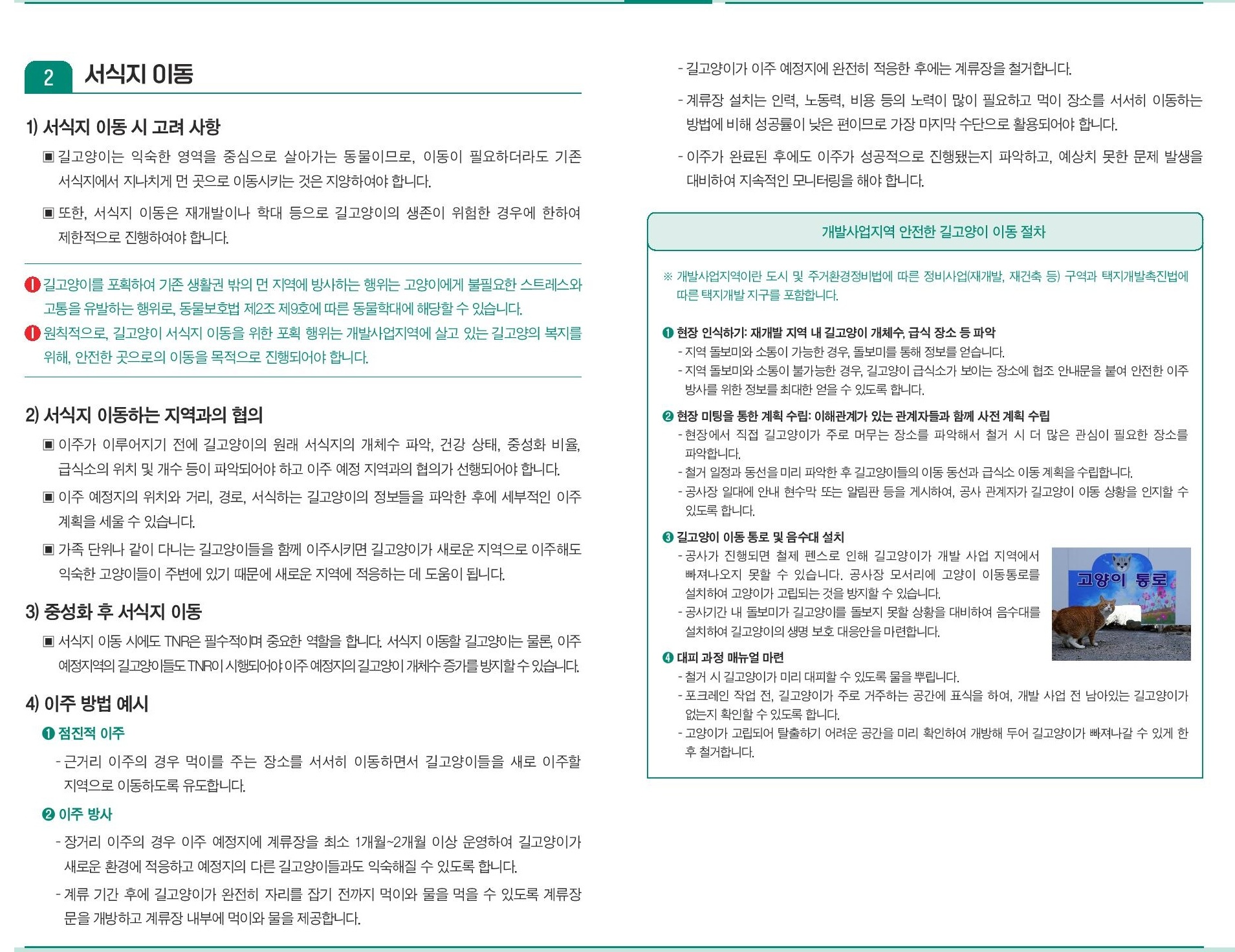 이번 개정판에서 새롭게 추가된 ‘길고양이 서식지 이동’ 지침도 주목을 끈다.