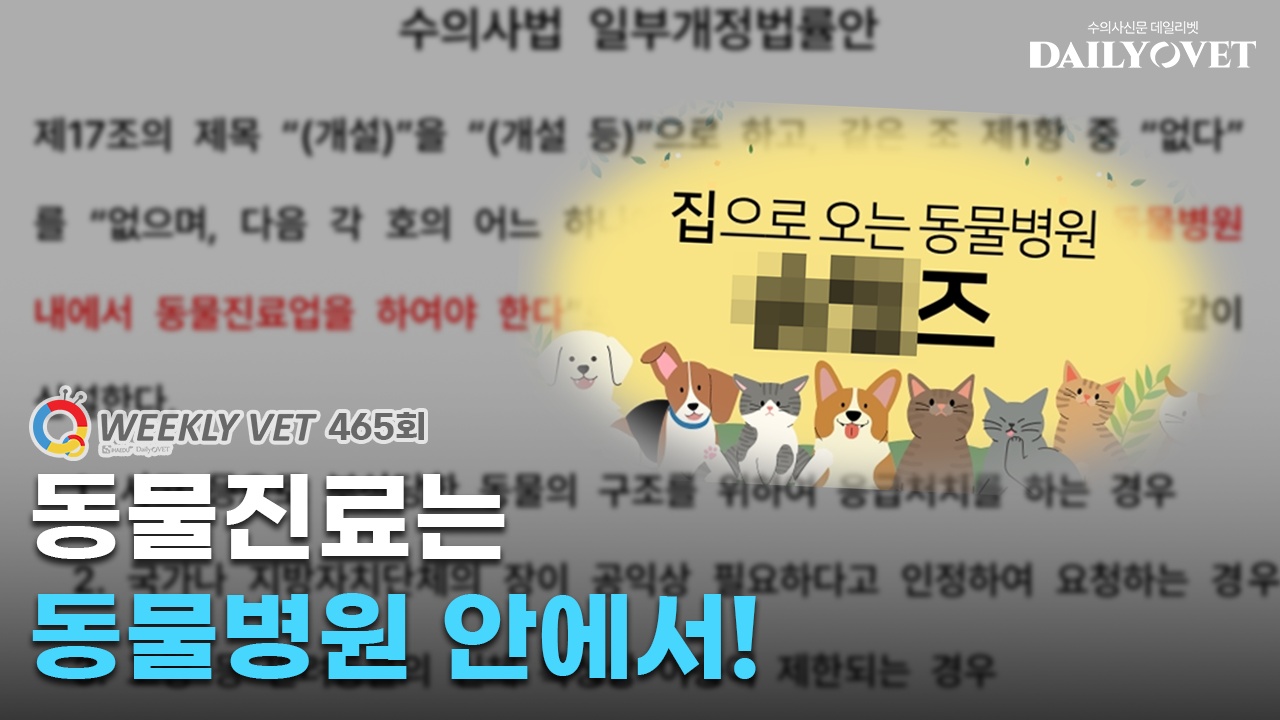 위클리벳 465회에서 이번 ‘수의사법 개정안’ 내용과 ‘동물병원 원내 진료 원칙’에 대해 알아보겠습니다.