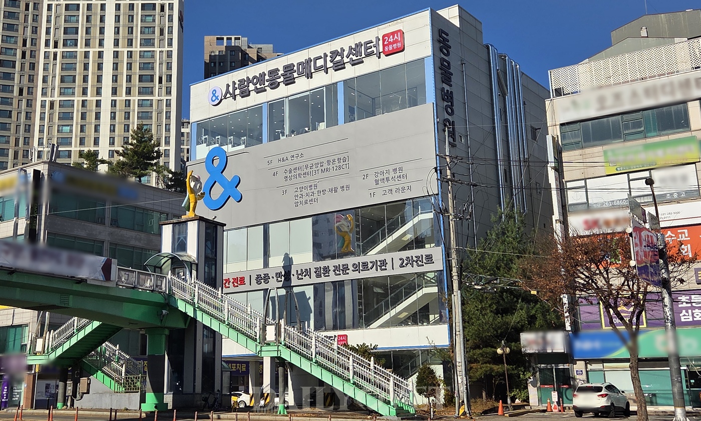 경기도 용인시 수지구 풍덕천동에 자리 잡은 사람앤동물메디컬센터는 과거 하이마트였던 5층 건물을 통째로 사용한다.