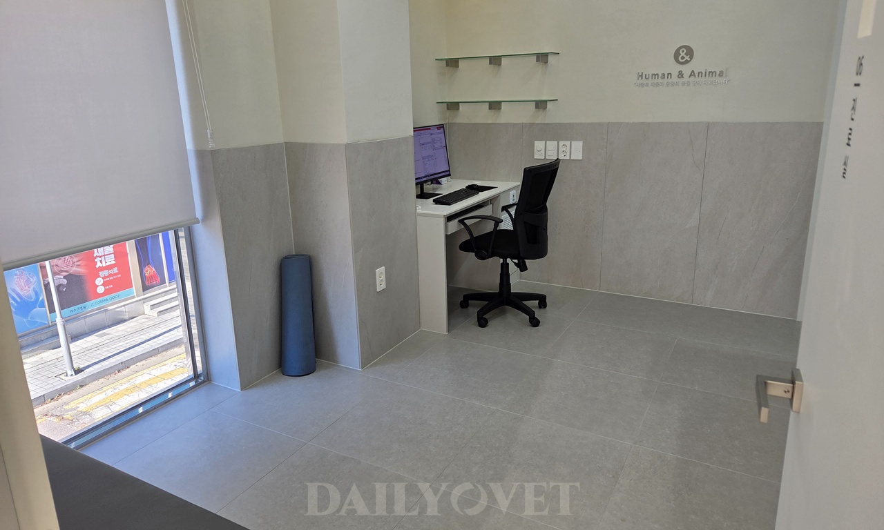 2층 강아지병원에는 총 6개의 진료실이 있다. 그중 하나는 대형견 전용 진료실로서 넓은 공간을 자랑한다. 대형견 전용 대기실, 입원실, 처치실도 별도로 마련되어 있다.