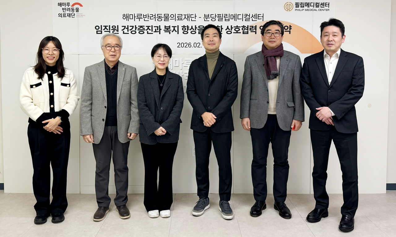김태진 창덕의료재단 필립메디컬센터 이사장은 “해마루반려동물의료재단과의 협력을 통해 임직원의 건강 관리와 삶의 질을 폭넓게 바라볼 수 있게 되었다는 점에서 의미가 있다”며 “앞으로도 의료기관으로서 사회적 가치를 실현하는 다양한 협력을 이어가겠다”고 말했다.