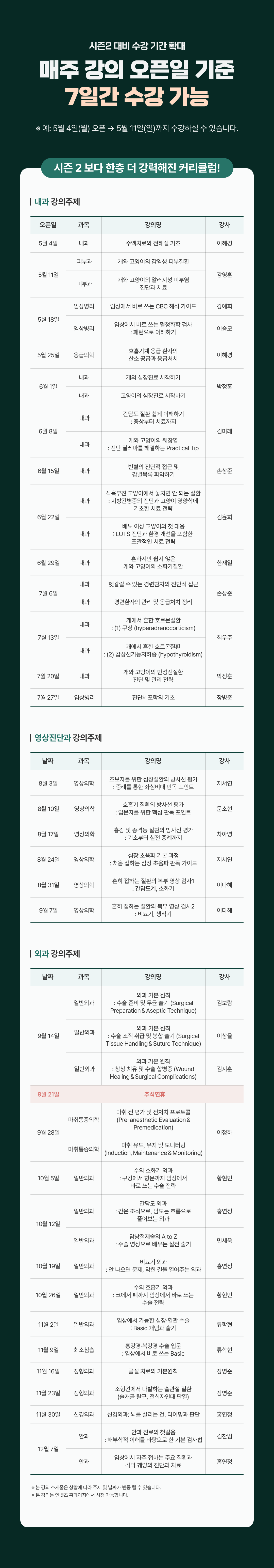 단순 이론이 아닌 실전 중심의 접근을 강조하면서, 여러 강의를 나눠 듣는 방식이 아니라 하나의 과정으로 임상 전반을 정리할 수 있도록 구성해, 시간 대비 학습 효율을 높였다.