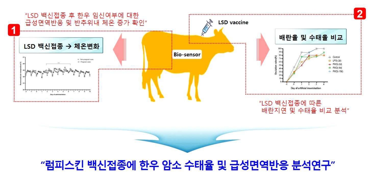 연구 결과, 목 부위 피하층에 표준 피하접종으로 럼피스킨 백신을 접종한 경우 체온, 활동성, 급성 면역반응 등 모든 생리지표가 정상 범위 내에서 유지됐다.