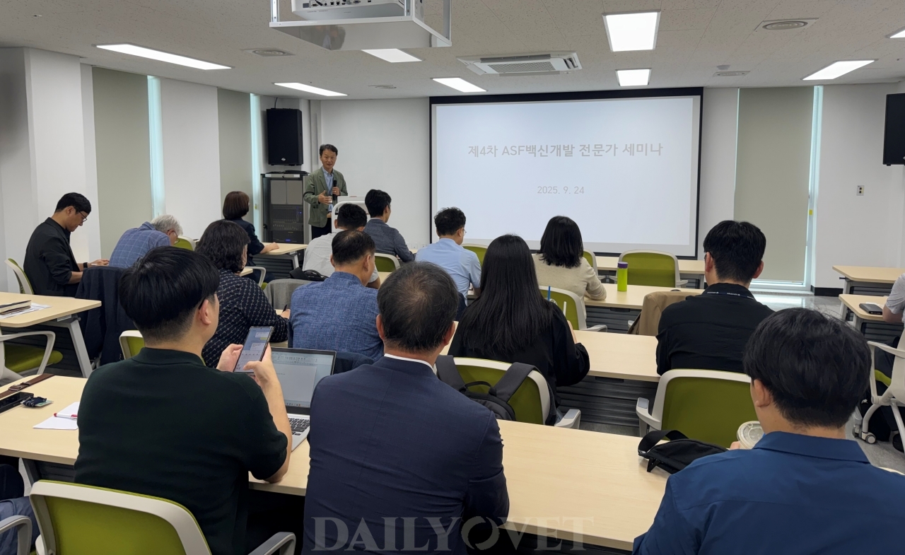 농림축산검역본부가 9월 25일(수) 김천 본부 생물안전연구3동에서 아프리카돼지열병(ASF) 백신 개발 전문가 세미나를 개최했다.
