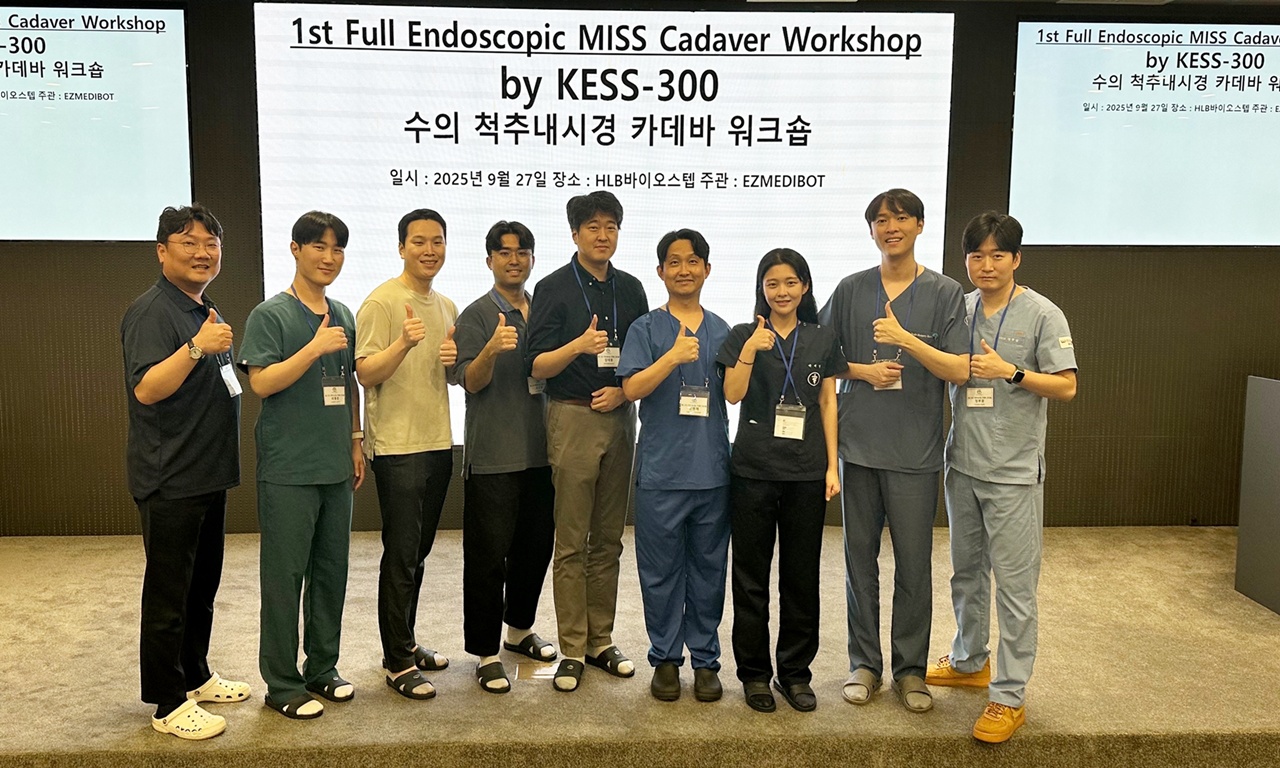 제1회 수의 단일공 척추내시경(Full Endoscope) 카데바 워크숍이 27일(토) 인천 송도에 위치한 HLB바이오스텝에서 성공적으로 개최됐다.